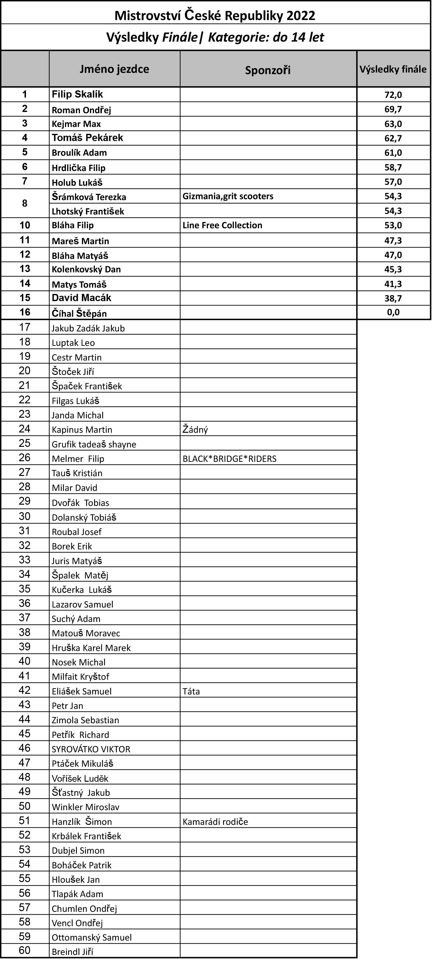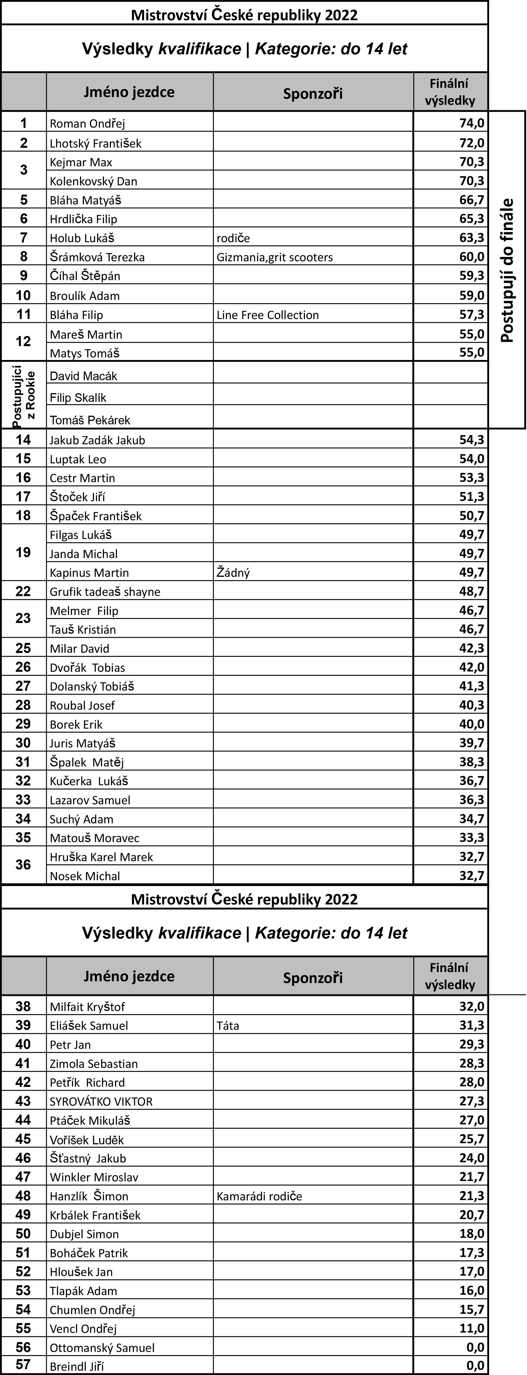 Sobota už patřila finálovým jízdám mladších kategorií a kompletní kategorii Masters. Finále proběhlo hladce, atmosféra byla neuvěřitelná (velký dík patří speakerovi a divákům)! Jsem si jistý, že nebýt takové atmosféry, závodníci by se kolikrát nehecli do takových triků a především do finálových last triků!