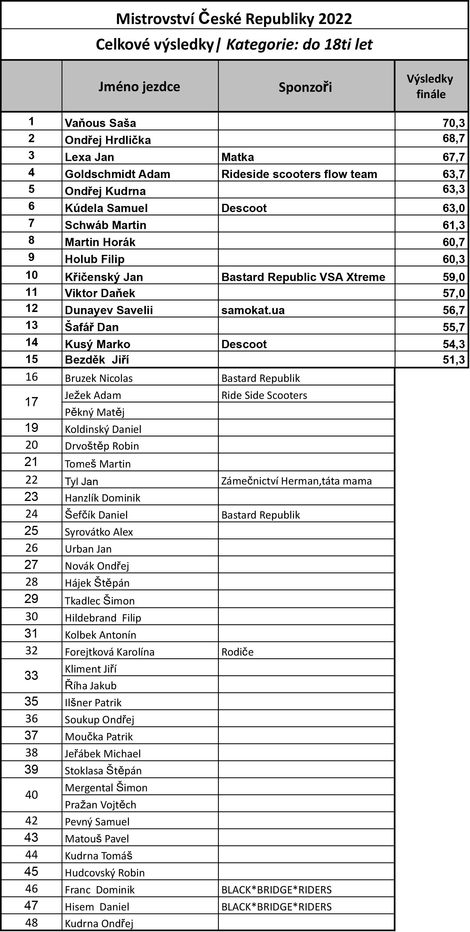 9. ročník MČR ve freestyle scooteringu se konal ve znamení velkých změn. Asi nejvýraznější změna pro všechny byl dvoudenní formát závodu s FUN ZONE před parkem. Ačkoli jsme z počátku slýchali nespokojené názory, formát měl jednoznačně úspěch. Už během soboty jsme získávali jen pozitivní ohlasy. Dost nás názory potěšily, protože uspořádat dvoudenní akci s doprovodným programem nebylo vůbec jednoduchý. Rozhodně jsme teď napumpovaní pozitivní energií na organizaci jubilejního 10. ročníku, který bude nesrovnatelně lepší, to si zapište! Další výrazná změna byla online registrace všech závodníků předem. Zpočátku nás tahle novinka během akreditace trochu vykolejila, ale rychle jsme si zvykli a pak šel zápis jezdů jak po másle. Pro příští ročník už víme co a jak. Asi nejméně viditelná změna byla organizace závodu podle nového soutěžního řádu, který byl upraven tak, aby vyhovoval mezinárodním standardům a také aby bylo snadnější pořádání celorepublikového poháru (tedy závodů Scooter Cup).